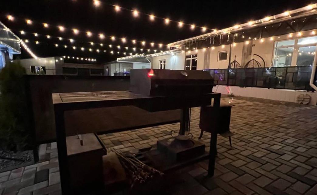 Для комфорта и безопасности наших гостей приусадебная территория окружена высоким забором. Рядом с домом расположена зона с барбекю, мангалом и большим столом со скамейками, где может разместиться до 15 человек. Также на территории расположена детская площадка.