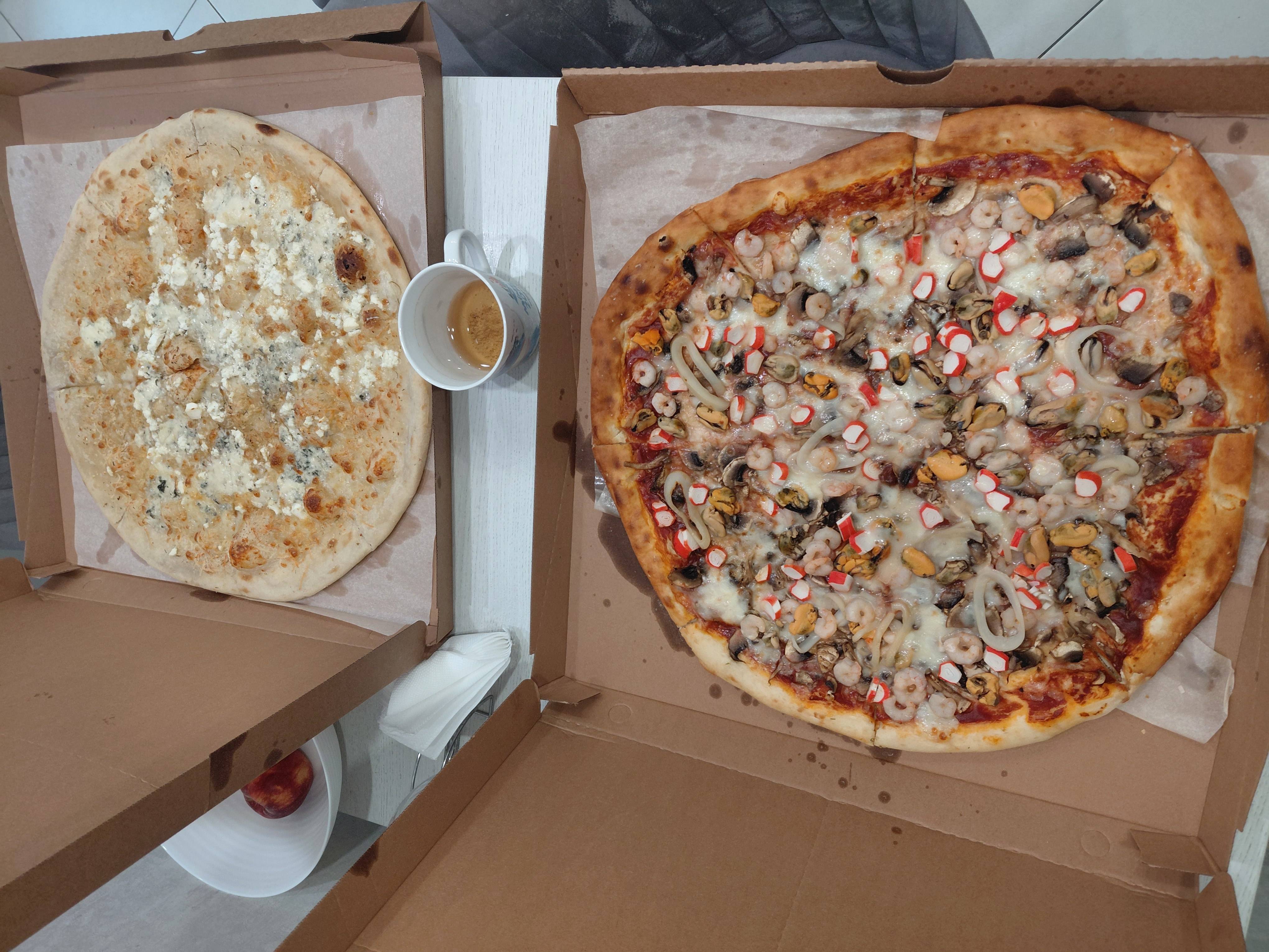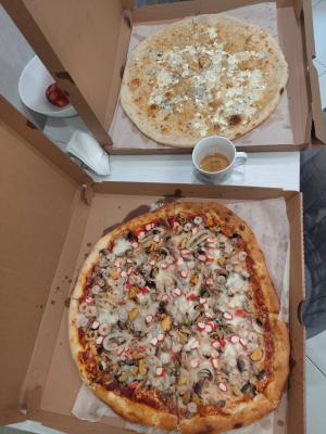 Заказывал 06.04.2026 две большие пиццы 5 сыров и с морепродуктами. Не понравились. Тесто невкусное. В сырной мало сыра, на фото это видно. Вторая еще больше не понравилась, начинки много, но не вкусно, хотя одна из самых дорогих.