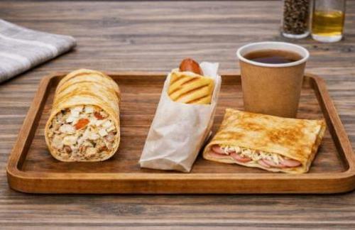 Состав: ароматные драники, сметана, зелень