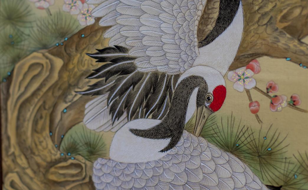 Примечательно, что китайская живопись глубоко символична. Картины можно просто рассматривать и любоваться красотой, а можно их читать и разгадывать, владея символикой смыслов. В каждой картине заложено благопожелательное значение. А чтобы легче было понять смысл картин, в экспозиции размещен свиток с перечнем символических значений.